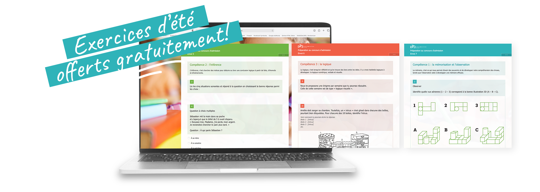 Nos élèves inscrits au printemps ou à l’été pour la préparation aux concours d’admission pour les collèges privés de l’Outaouais ont accès à du matériel en ligne, offert par courtoisie. Les exercices offerts sont à faire sur une base volontaire seulement.