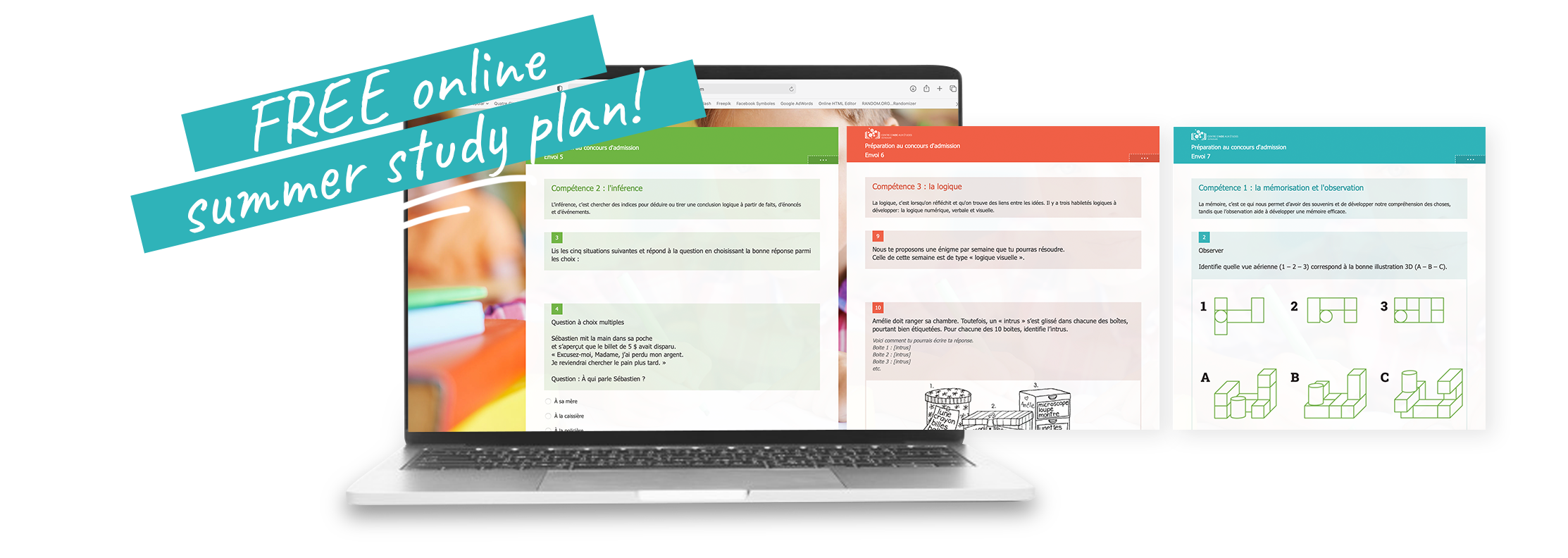 The main objective of these exercises is to give your child an early start in developing essential skills such as memorization, inference, observation, and logic. Only 20 to 25 minutes of weekly study time are needed, and your child will also be putting into use techniques on how to answer multiple-choice questions. The first set of exercises will be sent to students on June 25, followed by a new set every Friday in July and August. One of our preparation program teachers will offer weekly feedback.